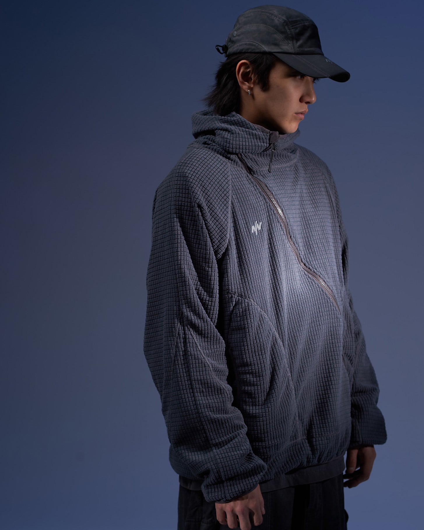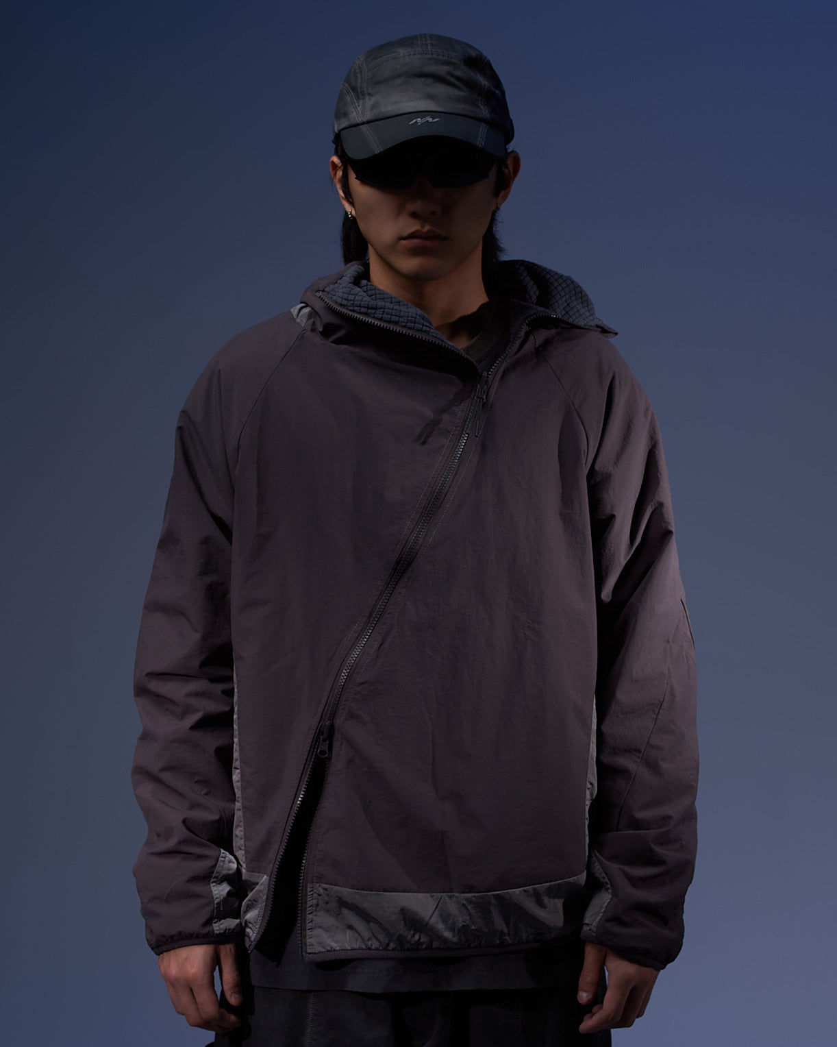 - Asymmetrical Front Zip Closure